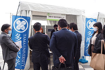 会場には民間企業や大学、行政機関など44の企業・団体が出展し、本学の教職員4名、長島剛ゼミの学生(5名)、連携企業3名の方が参加しました。